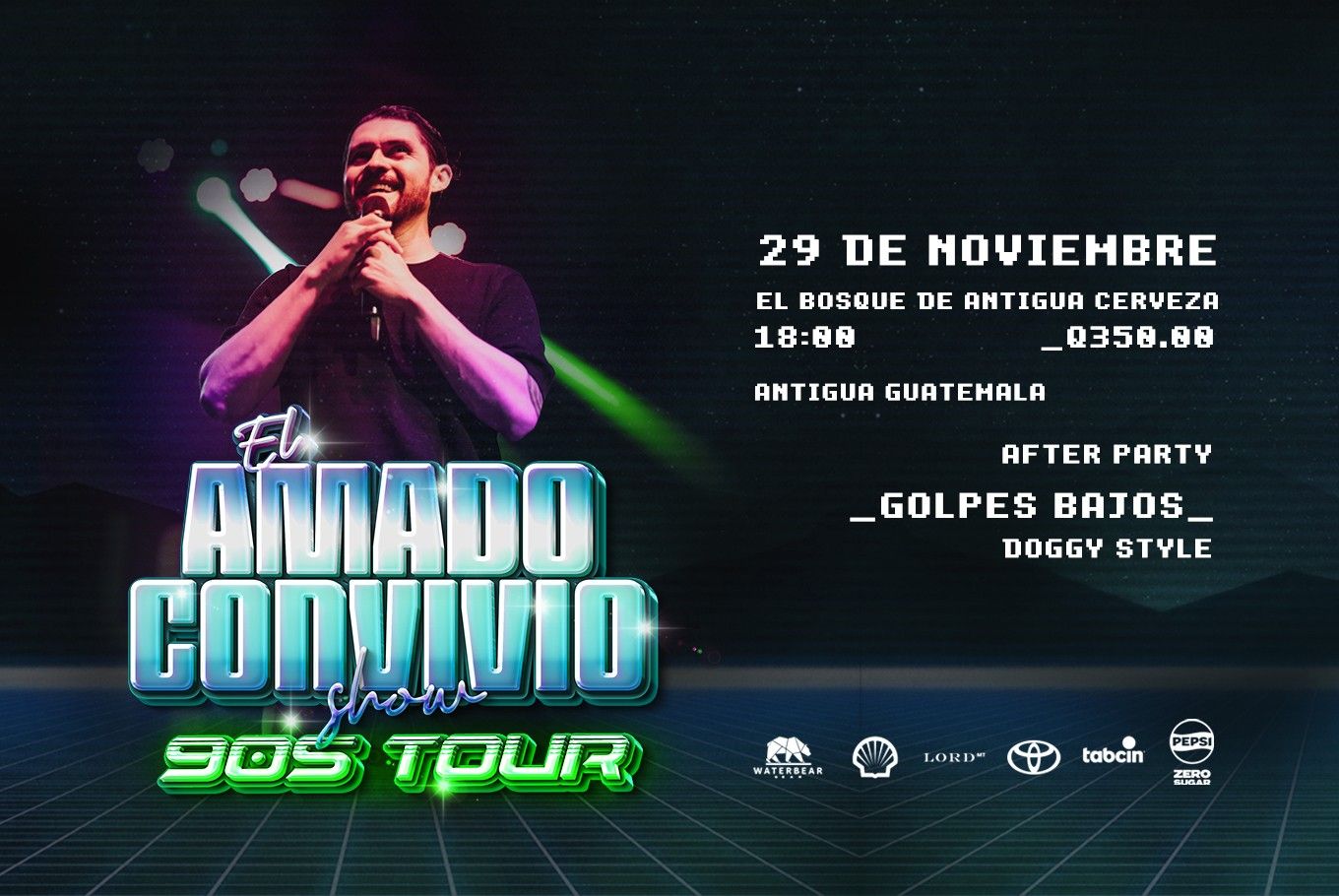 ¡Revive la Época de los 90's en el Amado Convivio Show! Una noche llena de música, diversión y nostalgia, donde Juan Pablo Amado presenta su icónico 90's tour. Disfruta de los grandes éxitos de la década y no te pierdas la After Party con Golpes Bajos y Doggy Style.