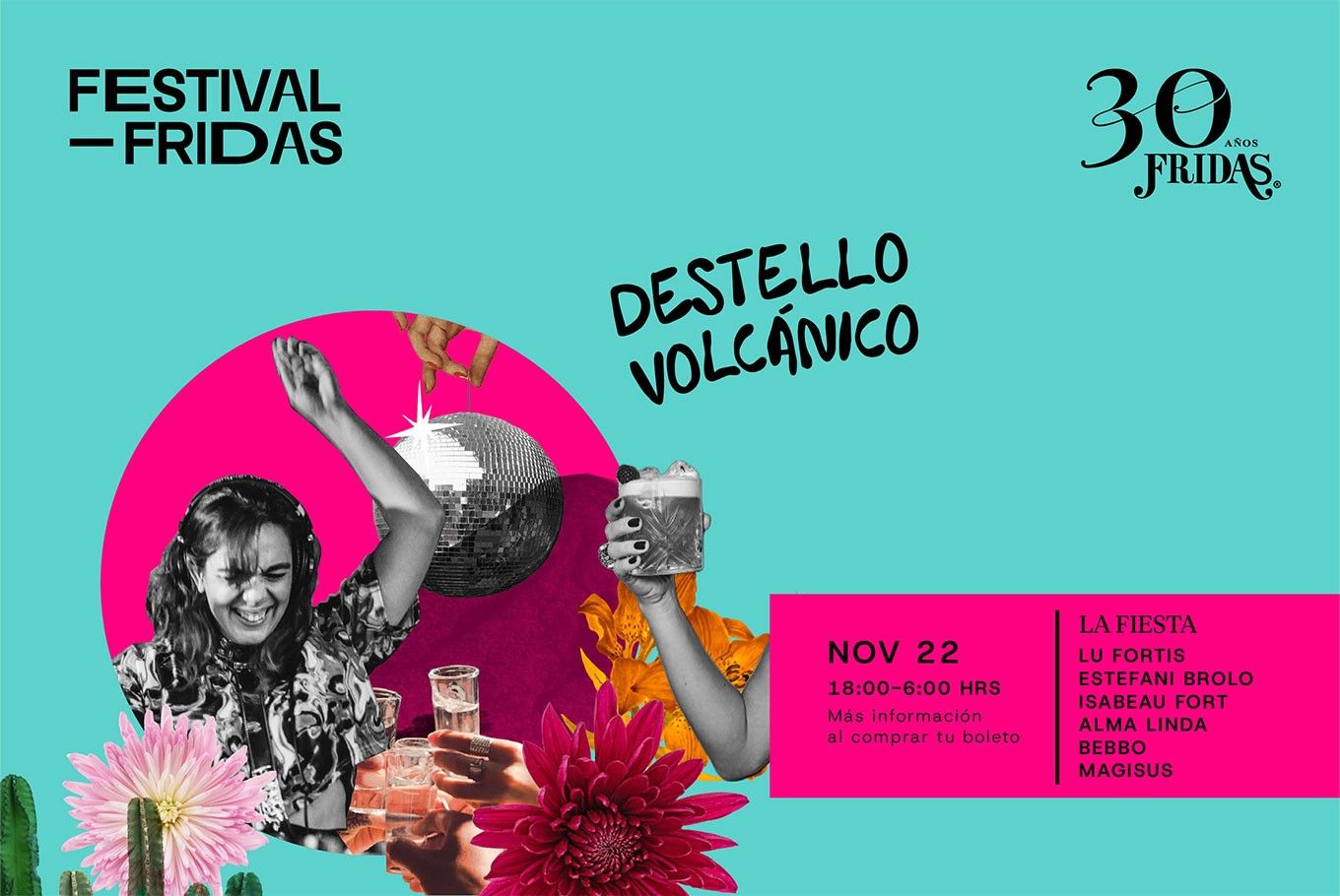 Fridas celebra 30 años con una fiesta, Destello Volcánico, que promete ritmo y buena vibra el 22 de noviembre. Con seis DJs excepcionales como Lu Fortis, Estefani Brolo e Isabeau Fort, se prepara una experiencia única en un lugar secreto revelado solo a los asistentes.