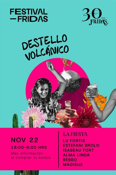 Fridas cumple 30 años y lo festeja con una explosión de ritmo, energía y buena vibra en Destello Volcánico, una fiesta que promete encender la noche con el poder de la música y la magia de lo inesperado.